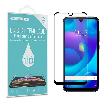 Protector de Cristal Full Glue 11D Premium (Pegamento Completo) para Xiaomi Mi Play en color Negro. Cobertura Total de la pantalla, protege tu teléfono con la garantía y calidad de la marca APOKIN.