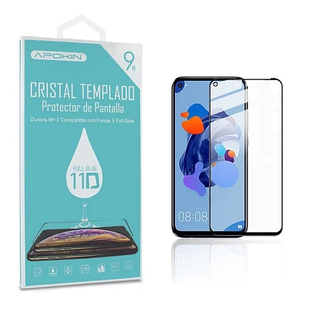 Protector de Cristal Full Glue 11D Premium (Pegamento Completo) para Huawei NOVA5T,HONOR20,Mate 30 Lite en color Negro. Cobertura Total de la pantalla, protege tu teléfono con la garantía y calidad de la marca APOKIN.