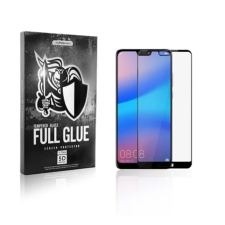 Protector de Cristal Full Glue 5D (Pegamento Completo) para Huawei P20 en color Negro. Cobertura Total de la pantalla, protege tu teléfono con la garantía y calidad de la marca APOKIN.