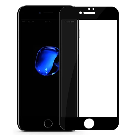 Protector de Cristal Full Glue (Pegamento Completo) para iPhone 7 Plus / 8 Plus en color Negro. Cobertura Total de la pantalla, protege tu teléfono con la garantía y calidad de la marca APOKIN.