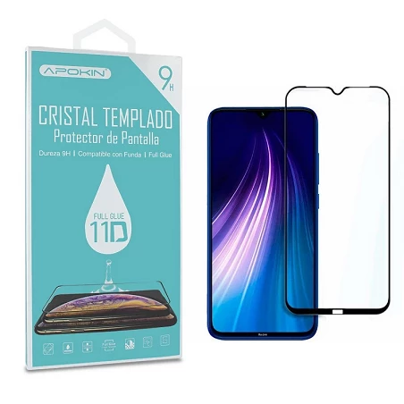 Protector de Cristal Full Glue 11D Premium (Pegamento Completo) para Xiaomi Redmi Note 8 /HUAWEI Y7 2019en color Negro. Cobertura Total de la pantalla, protege tu teléfono con la garantía y calidad de la marca APOKIN.