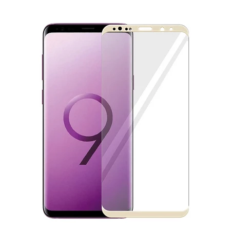 Protector de Cristal Curvo para Samsung Galaxy S9 Dorado. Cobertura Total de la pantalla, protege tu teléfono con la garantía y calidad de la marca APOKIN.