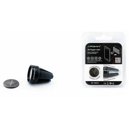 Mini Soporte Magnético Rejilla APOKIN. Fácil y rápido acerca tu smartphone al soporte y éste imantará automáticamente para sujetar tu móvil de manera segura en tu coche.