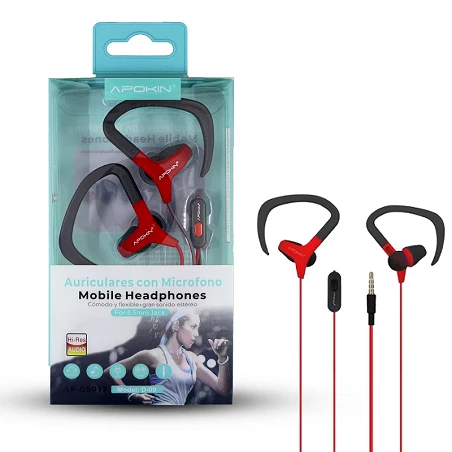 Auscultadores com microfone APOKIN Esporte, com comando e micro que são projetados para se adaptar a todos os tipos de orelhas, você pode controlar o volume e reprodução de música e vídeo, bem como responder ou pendurar chamadas enquanto pratica seu esporte favorito. Compatível com dispositivos com conector de entrada de áudio.