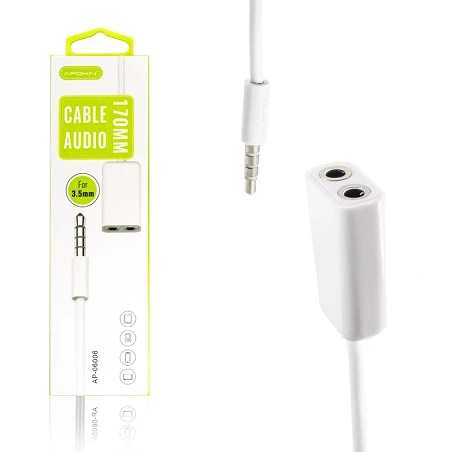 • Cabo de áudio APOKIN Adaptador Minijack macho para duas fêmeas 3,5 mm