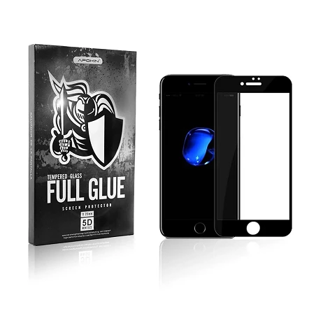 Full Glue 5D Crystal Protector (Full Set) para Iphone 7 / 8 em preto. Cobertura total da tela, proteger seu telefone com garantia de marca e qualidade APOKIN.
