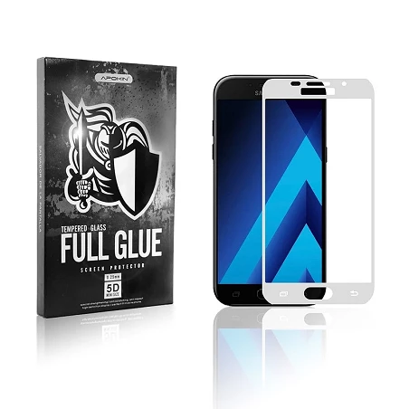 Protetor de cristal de cola completa 5D para Samsung Galaxy A5 2017 em branco. Cobertura total da tela, proteger seu telefone com garantia de marca e qualidade APOKIN.