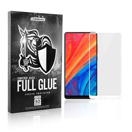 Protetor de cristal de cola completa 5D para Xiaomi Mi Mix 2 em branco. Cobertura total da tela, proteger seu telefone com garantia de marca e qualidade APOKIN.
