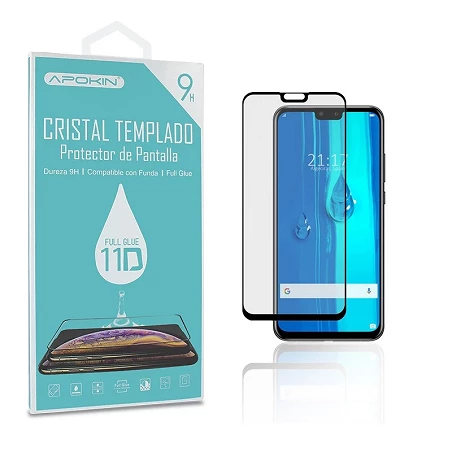 Protetor de vidro premium de cola completa 11D para Huawei Y9 2019 em preto. Cobertura total da tela, proteger seu telefone com garantia de marca e qualidade APOKIN.