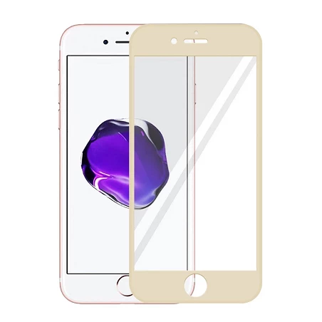 Protetor de cristal temperado para iPhone 7 em cor dourada. Cobertura total da tela, proteger seu telefone com garantia de marca e qualidade APOKIN.