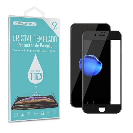 Protetor de vidro premium de cola completa 11D para iPhone 8 Plus em preto. Cobertura total da tela, proteger seu telefone com garantia de marca e qualidade APOKIN.