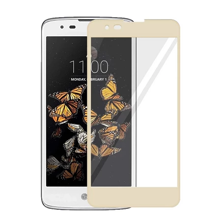 Protetor de vidro temperado para LG K8 em cor dourada. Cobertura total da tela, proteger seu telefone com garantia de marca e qualidade APOKIN.